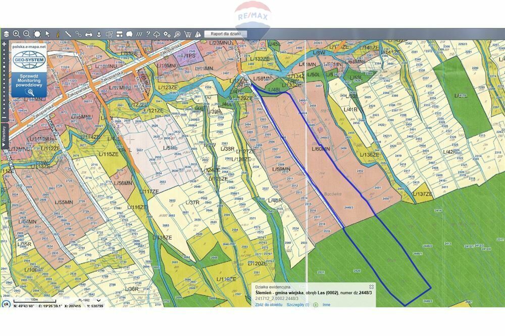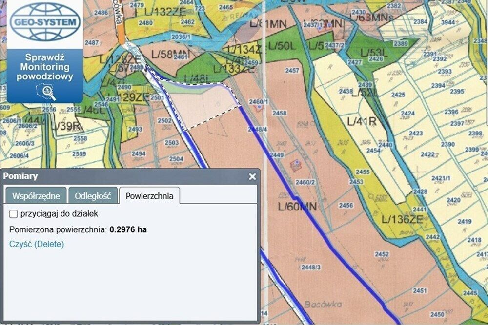 Działka numer : 2448/3 przed podziałem - powierzchnia w całości 46
